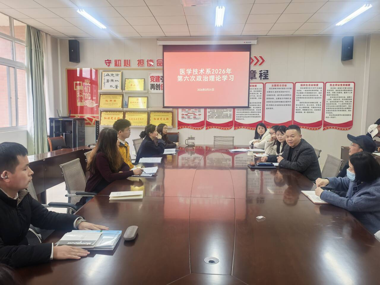 3月31日下午,医学技术系在系部会议室召开第六次政治理论学习会议。会议由医学技术系副主任雍国富主持,全体教职工参会。会上集中学习了习近平总书记在河北雄安新区考察时的重要讲话精神、《习近平关于树立和践行正确政绩观论述摘编》第二专题《树立和践行正确政绩观,起决定性作用的是党性》《求是》杂志发表习近平总书记重要文章《当前经济工作的重点任务》等内容。会议指出,全体教职工需深刻领会习近平总书记在河北雄安新区考察时的重要讲话精神,立足岗位实际,将新发展理念融入教育教学与科研创新中;要深入研...
