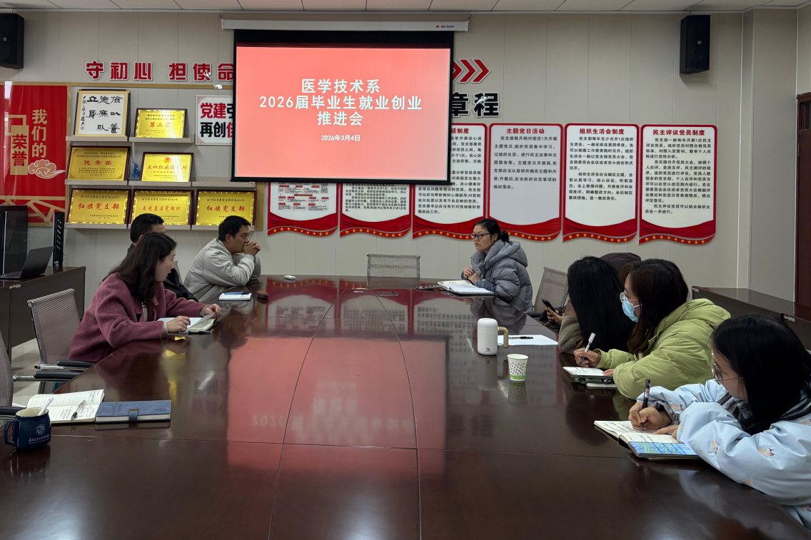 为进一步推动医学技术系2026届毕业生更高质量充分就业。2026年3月4日下午,医学技术系在A304会议室召开2026届毕业生就业创业工作推进会,系党总支书记代晖、系副主任雍国富、学生工作办公室副主任赵欣、系就业工作人员及全体2026届毕业班辅导员参会,全面部署下一阶段就业创业重点工作。