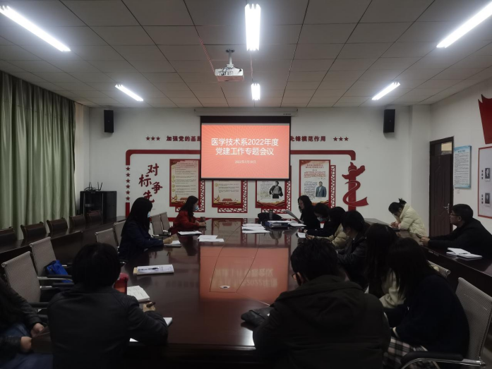 为贯彻落实学校党委关于党建工作的部署安排,2022年3月18日医学技术系组织全体党员在系A304党员活动室召开2022年基层党建工作会,会议由党总支副书记、支部书记代晖主持。