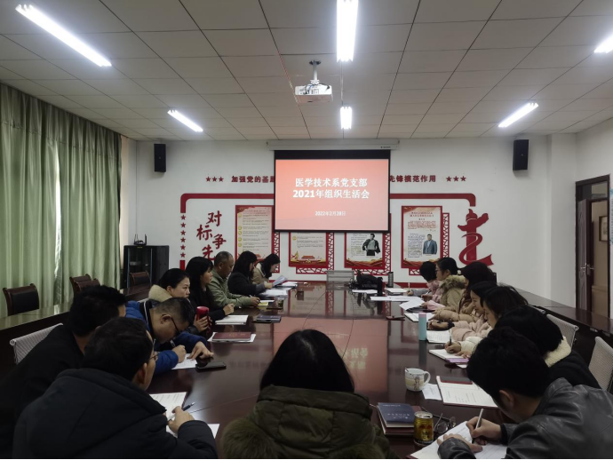 2022年2月28日下午,医学技术系党支部在系部党员活动室召开2021年度组织生活会和民主评议党员工作大会。会议由支部书记代晖同志主持,党支部全体党员参加会议。学校党委委员、副校长王平同志列席此次组织生活会。