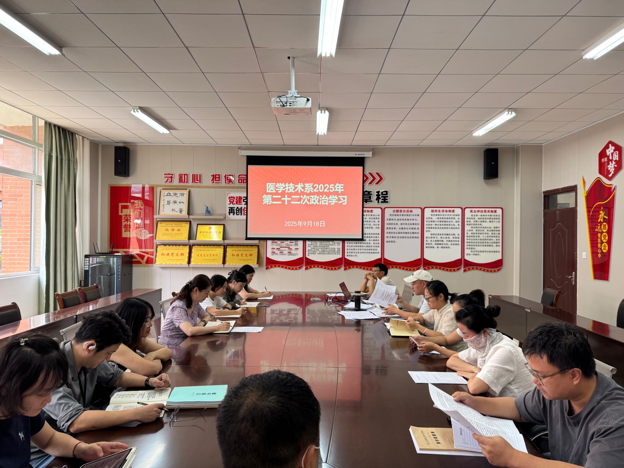 2025年9月18日下午,医学技术系在系部会议室召开第22次政治学习会议。会议由系党总支书记代晖主持,全体教职工参会。