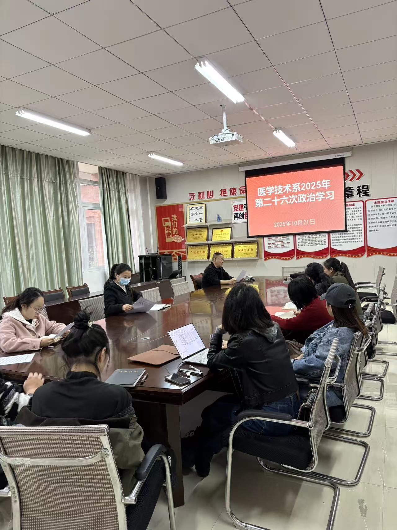10月21日下午,医学技术系在系部会议室召开第26次政治学习会议。会议由系副主任雍国富主持,全体教职工参会。