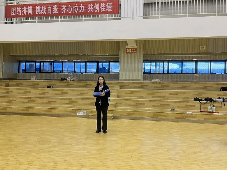 医学技术系党总支书记代晖为开幕式致辞。她对本次篮球赛的顺利开幕表示热烈祝贺。她指出,体育运动所蕴含的拼搏精神、团队意识和规则观念,与医学技术专业学生将来职业中所必备的严谨、协作、坚韧的职业素养高度契合。她希望全体运动员在赛场上尊重裁判、尊重对手,赛出风格、赛出水平;在赛场下,能将这份激情与协作精神融入未来的学习和科研中,努力成长为德智体美劳全面发展的卓越医学技术人才,并预祝本次“迎新杯”篮球赛取得圆满成功。