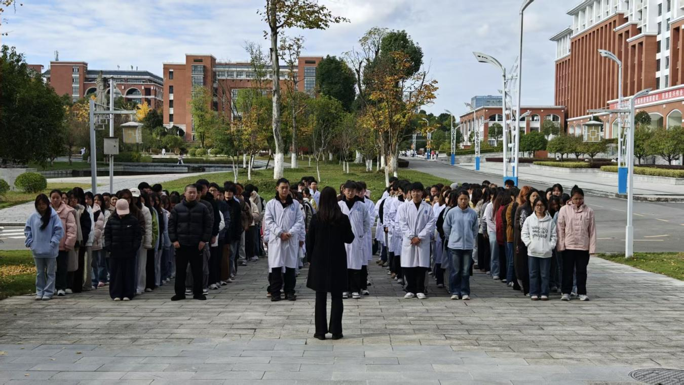 为进一步增强医学技术系师生的消防安全意识,提升师生的自救互救能力,有效防范并应对火灾事故,切实保障师生的生命安全,医学技术系于2025年11月12日上午10点,组织2024级全体学生及教职员工开展了火灾疏散逃生演练。