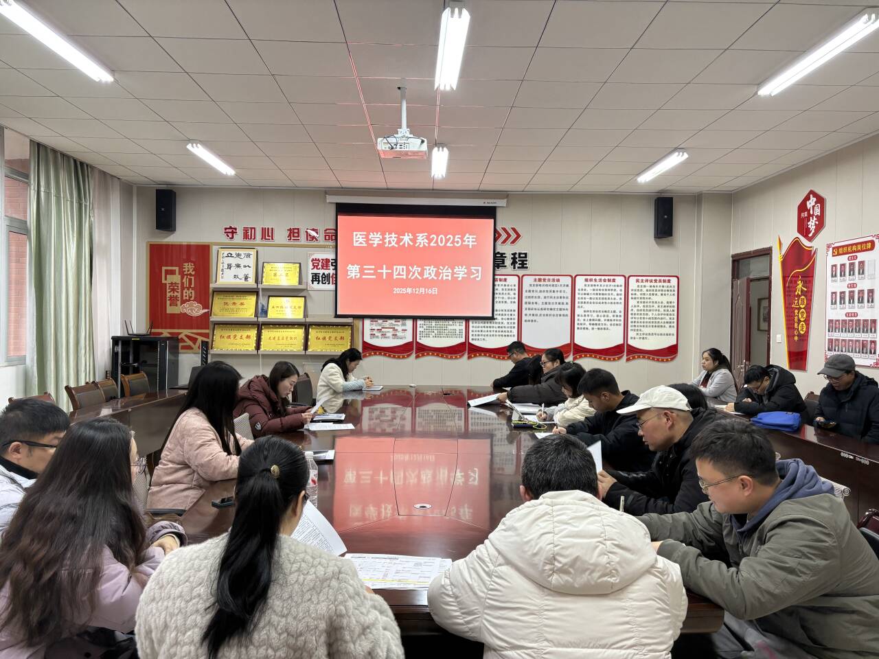 12月16日下午,医学技术系在系部会议室召开第三十四次政治学习会议。会议由系党总支书记代晖主持,全体教职工参加。