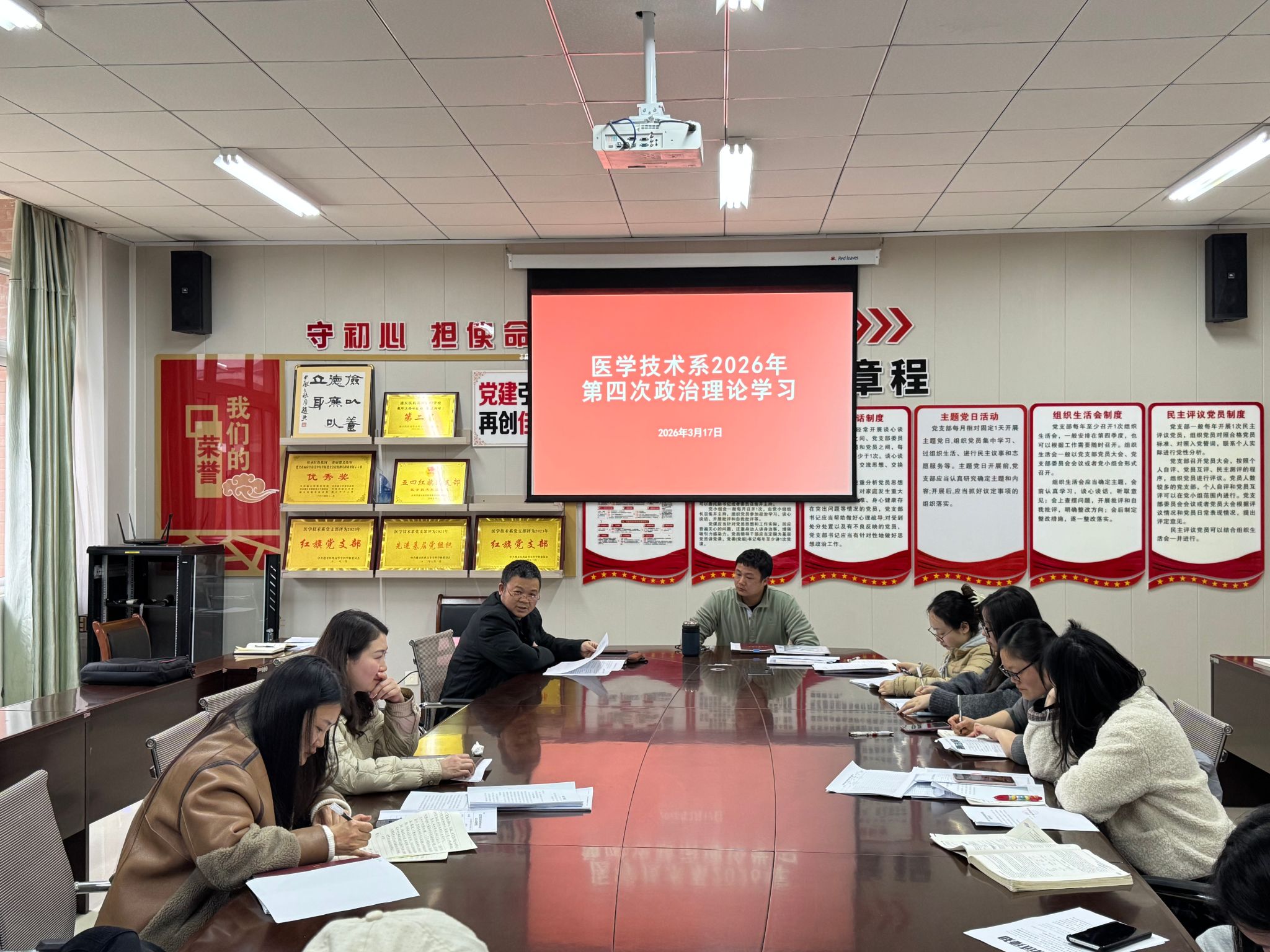 3月17日下午,医学技术系在系部会议室召开第四次政治理论学习会议。会议由系党总支书记代晖主持,全体教职工参会。